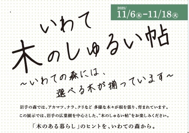 令和7年11月6日(木)~18(火)に新宿パークタワー5階MOCTIONにて岩手県産木材を展示しています!(12日休館)