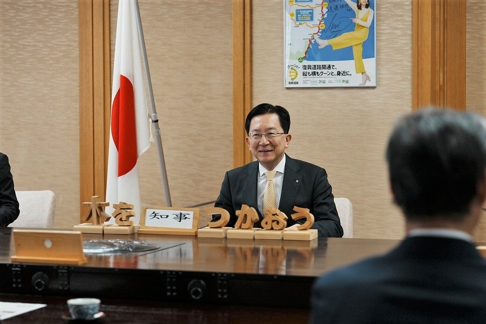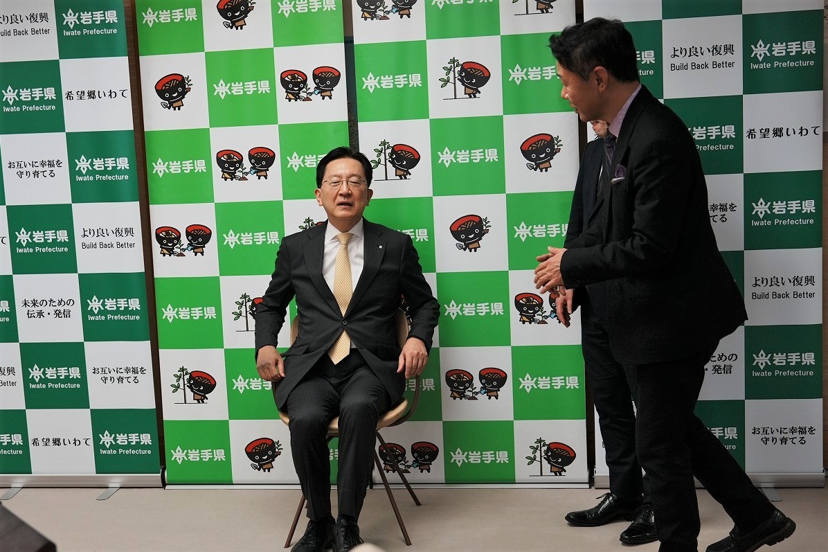 ㈱イトーキが製造・販売する椅子『バーテブラ03ウッド』(県産クリ材使用)が、岩手県のふるさと納税の返礼品として登録されました!㈱イトーキの湊社長と木津屋本店の池野社長が達増知事を表敬訪問し、オフィス空間における県産木材の更なる利用促進について懇談しました。#さとふる #岩手県産木材